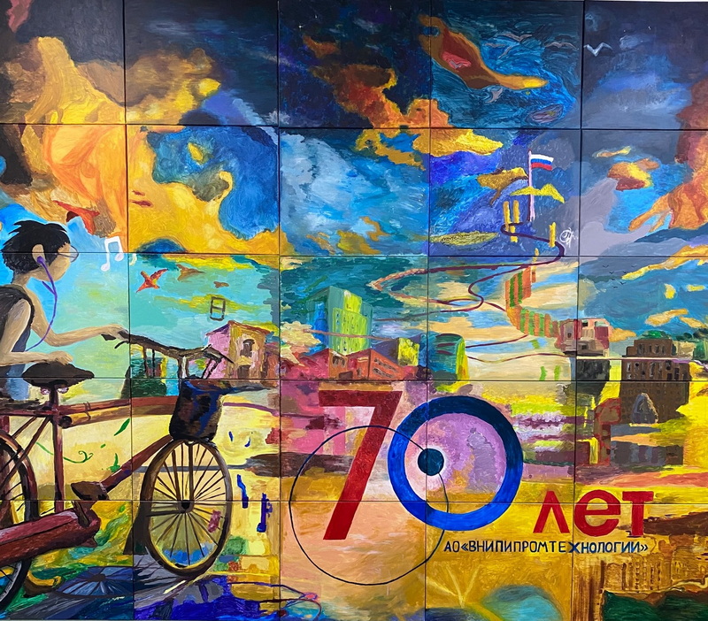 Оригинальное поздравление институт получил и от своего трудового коллектива. Сотрудники АО «ВНИПИпромтехнологии» нарисовали большую картину. «Яркие цвета на картине показывают наш сегодняшний успех, а перспектива и простор — обширные планы на будущее. Картина получилась очень красивой, повесим ее в холле» — рассказал Алексей Шеметов.